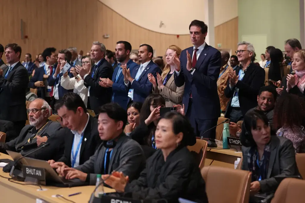 By midday Saturday, after hours of overnight consultations, negotiators appeared to believe they had built consensus around some modified version of Rafiyev’s draft text. In the early afternoon, Rafiyev convened hundreds of diplomats in a negotiating room that grew so full that security started to bar key finance experts and foreign ministers from entering. As a scrum of reporters amassed outside the door, the presidency called the room to order.