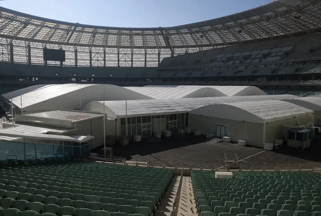 As the conference’s second and final week neared its close, negotiators found themselves leaving the talks after the official shuttle buses had departed, giving them no choice but to hail cabs from the side of an eight-lane highway. The conference venue itself became a visual metaphor for the stalemate: Talks took place in a makeshift structure erected on the floor of the Baku sports stadium, positioning negotiators like gladiators in a coliseum.