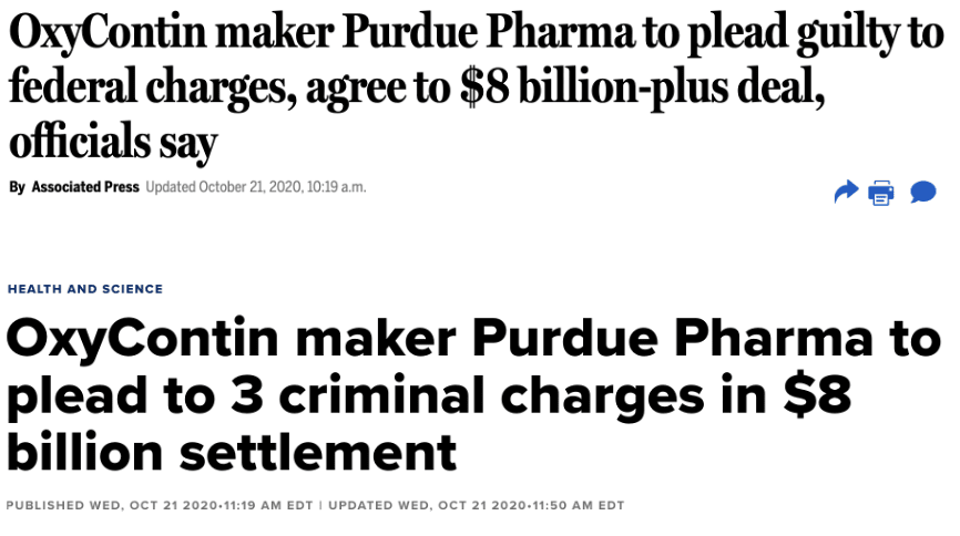 Purdue and its Sackler family owners made billions by methodically and scientifically getting ordinary people across the country addicted to opioids; they did this over more than 20 years, despite repeated and serious warnings. The consequences for them? Few worth mentioning.