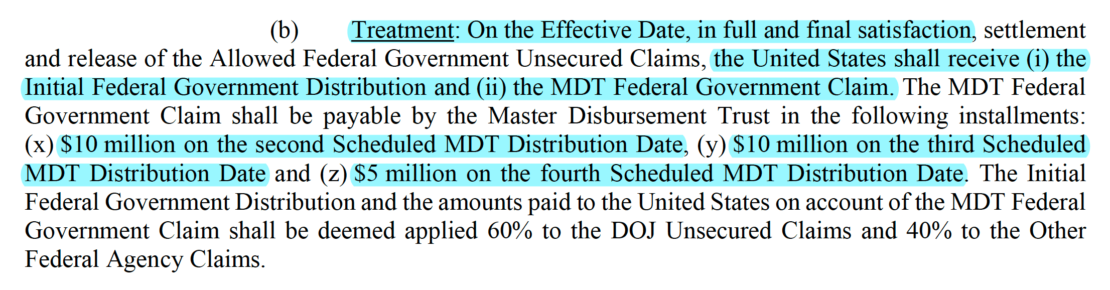 Good luck figuring out what was actually paid to the Feds. By my reporting, and review of the 245-page “18th amended” version of the plan (download PDF), the $8 billion-plus waters down to about $275 million. There’s a $225 million from Purdue to the Justice Department — that must be the standard “make my crime go away, please” fee: