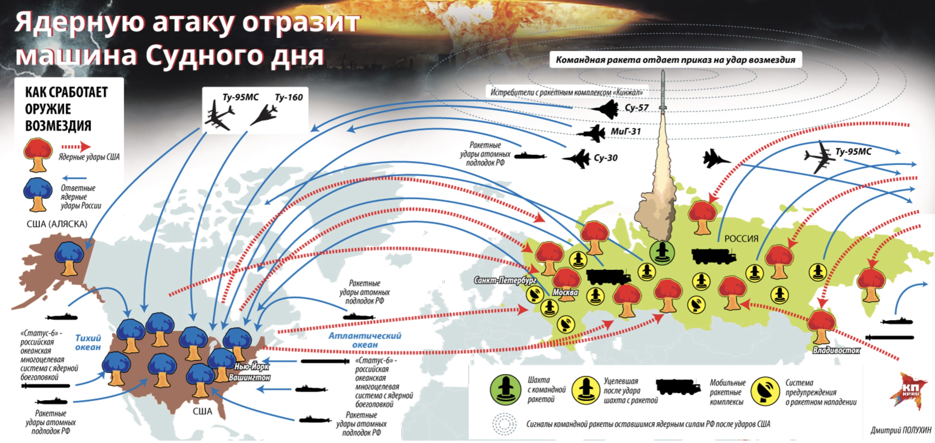 This very busy graphic describing the Dead Hand, from the Russian newspaper Komsomolskaya Pravda, is overwhelming in any language, but at least gets across that there is, indeed, nothing good about it.